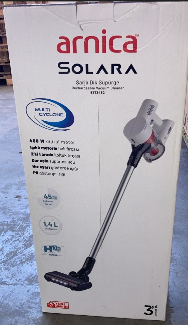 Genel olarak Arnica Solara ET13452, ev içi temizliği için dengeli bir kombinasyon sunar: kablosuz özgürlük, yeterli çekiş gücü ve temizliğin akışını bozmayan tasarım. CE uygunluk sembolü ve güvenilir üretici/ithalatçı bilgileri ile kullanıcı güvenilirliği sağlar. Eğer siz daha çok sert zeminleri ve orta yoğunlukta günlük temizliği hedefleyen bir cihaz arıyorsanız, bu model iyi bir seçenek olarak öne çıkabilir.